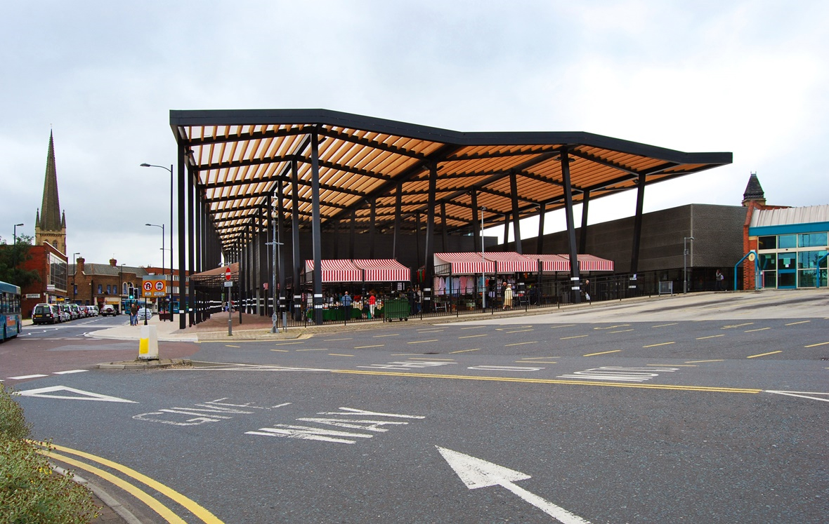 Horace Jones, working a little later in London, produced Leadenhall Market, old Billingsgate, and Smithfield. In contrast to the spare neoclassicism of Baltard, we are now in the florid heyday of Victorian historicism – Jones’s final, posthumously completed work was Tower Bridge – and the ironwork structure of his buildings is flamboyantly decorated. Beyond the capital, great iron-roofed markets were built all over Britain, including Leeds in 1857 and Stockport in 1860 – again, two polar examples of encrustation and restraint, partly motivated in this instance by differing municipal budgets.