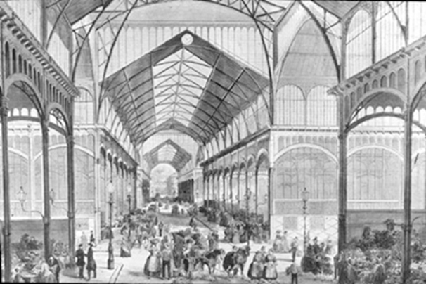 Conceptually, the idea of a food hall isn’t entirely new. Collections of local, varied food and beverage vendors in a dedicated retail space have been around for centuries, both globally and nationally. The impulse to concentrate commercial activity is an old one. It allows for a more controlled urban environment and the easier access to products. The Romans tried it – the market of Trajan survives, its brick structure and concrete vaults forming a curved shopping arcade. The modern food hall can trace its roots back thousands of years but when did the market hall become an arcade or mall, a place with permanent shops, bars and restaurants? There was no simple historical evolution from one to the other.