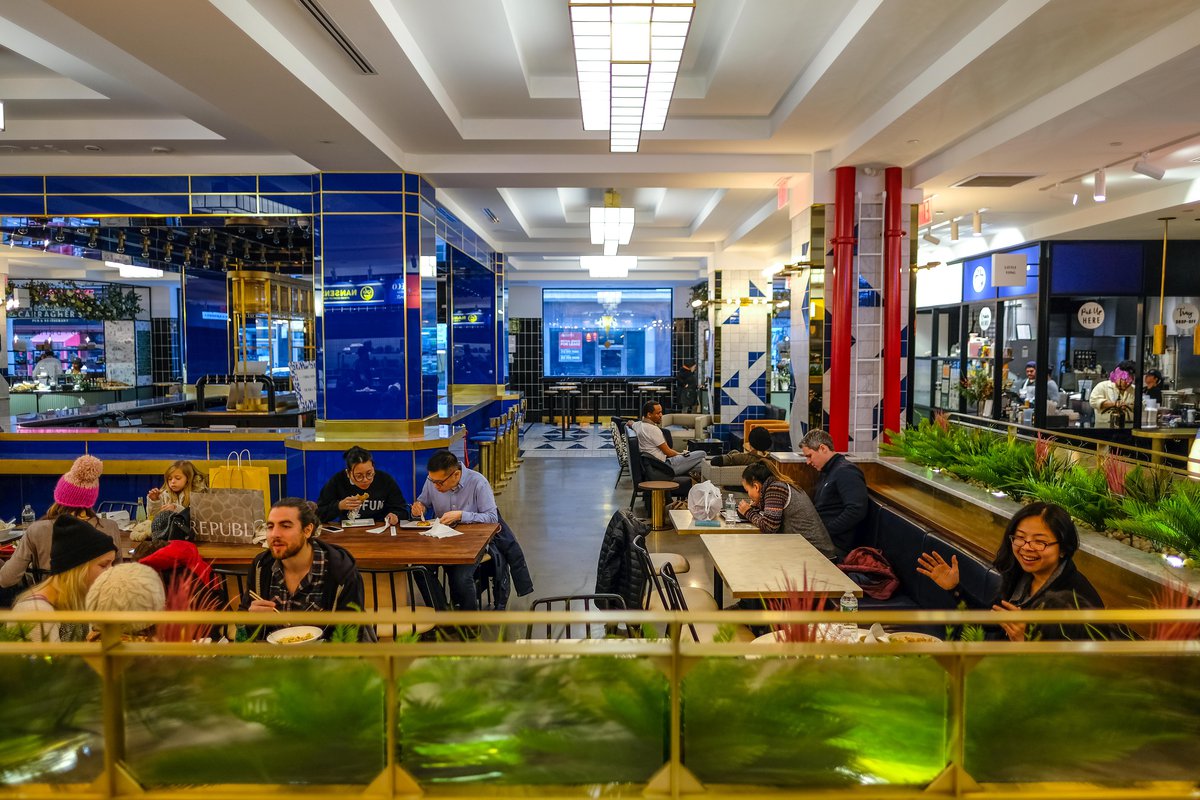 In other cases, food halls’ physical environs are significant not only in isolation, but within a larger context. Mixed use developments that incorporate food halls can be appealing to real estate developers and tenants alike, allowing landlords to ask for more per square foot from tenants who view a conveniently located collection of quality dining options within the same building as an amenity. As such, food halls are increasingly appearing in newly constructed high-rise office and apartment buildings.